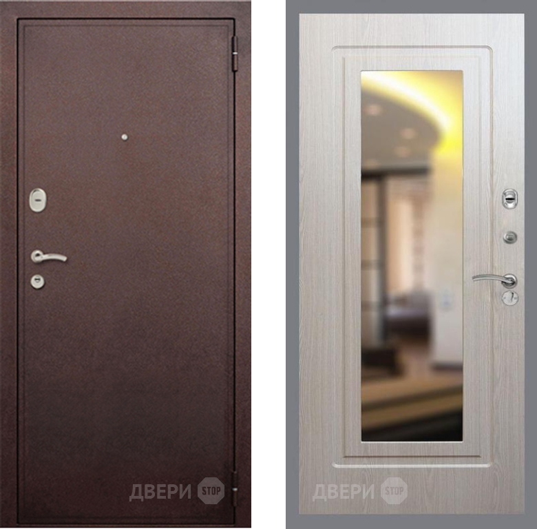 Входная Дверь Рекс (REX) 2 Медный Антик FLZ-120 Беленый дуб 960x2050 мм